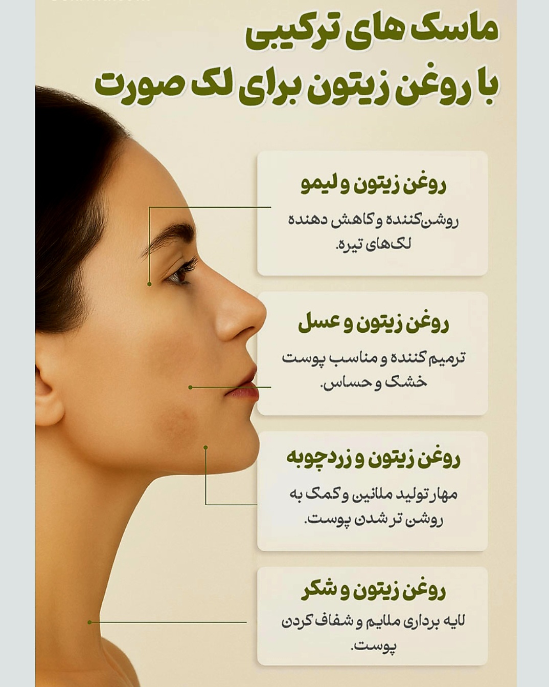 حتما از روغن زیتون فوق بکر (Extra Virgin) و ارگانیک استفاده کنید. روغنهای معمولی ممکن است حاوی مواد شیمیایی یا فرآوری شده باشند که برای پوست مضر است.